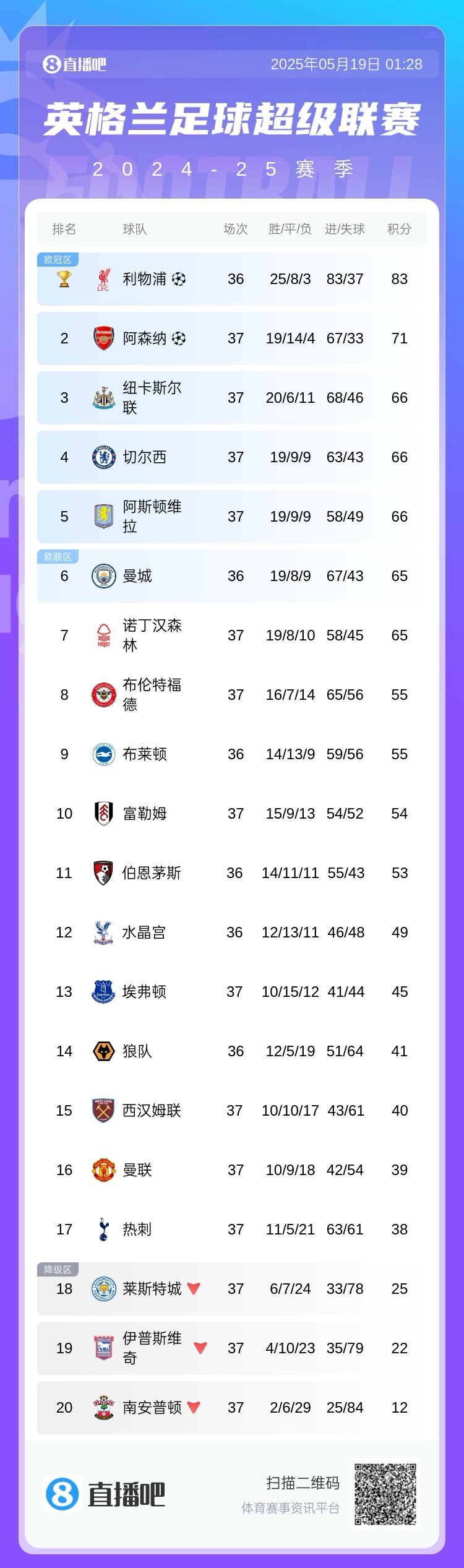 05月19日宣 英超进行到第37轮,纽卡0-1不敌阿森纳,与切尔西、维拉同积66分。