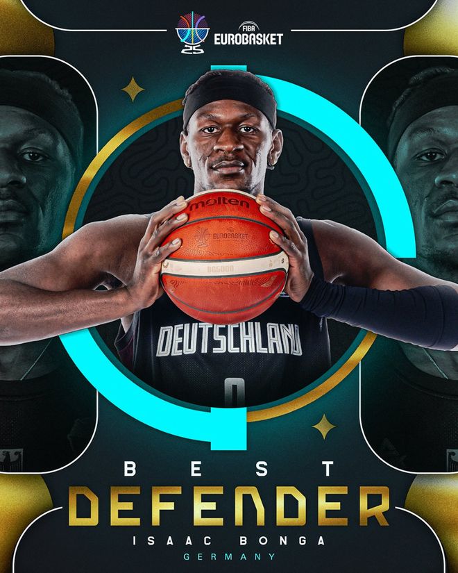 艾萨克-邦加在2025年欧洲杯决赛中发挥出色,登场短短24分钟,11投8中,三分球4投全中,拿到20分5篮板4助攻1抢断1盖帽,他当选了欧洲杯FMVP,还当选了欧洲杯的最佳防守球员。