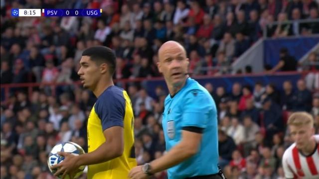 比赛第9分钟,埃因霍温防守球员禁区内解围时踢倒对方送点,普罗米斯-戴维主罚一蹴而就!