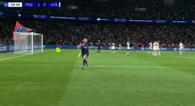 比赛第39分钟,K77中路带球长驱直入,随后禁区线附近一脚强力抽射贯穿亚特兰大球门!巴黎2-0领先!