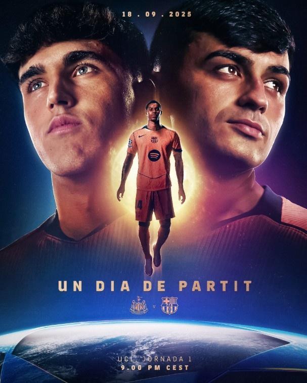 北京时间9月19日3点,新赛季欧冠联赛阶段第1轮,巴萨做客圣詹姆斯公园球场挑战纽卡,俱乐部官方发布本场比赛的海报,重返英格兰的拉什福德位居C位,佩德里、库巴西出镜。