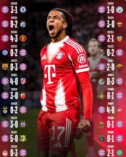 拜仁已经连续22个赛季在欧冠首轮比赛取胜,他们面对的对手包括了巴萨、国米、曼城、曼联等队。上赛季,拜仁在欧冠联赛阶段首轮比赛曾以9-2的比分血洗萨格勒布迪纳摩。