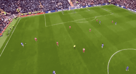 第10分钟,萨拉赫回撤后送出挑传,赫拉芬贝赫插上后,不停球轻巧挑射,皮球正好越过皮克福德的头顶。