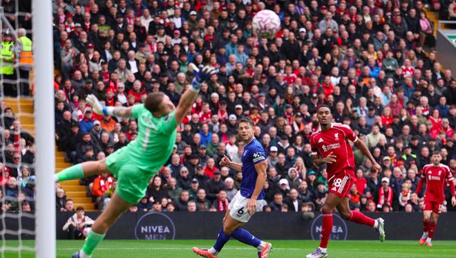 第29分钟,利物浦前场反抢,赫拉芬贝赫送出助攻,埃基蒂克冷静推射,帮助利物浦取得领先优势。埃基蒂克7场比赛打进4球,追平了在巴黎33场的进球数,其中5场英超打进3球。