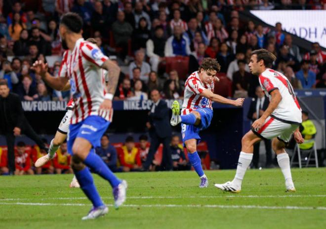 今日凌晨,西甲第6轮,马竞主场迎战巴列卡诺。阿尔瓦雷斯首发出场。第15分钟,马竞在右路推进,略伦特传中,阿尔瓦雷斯在后点甩开后卫,随后凌空抽射得手,1-0!