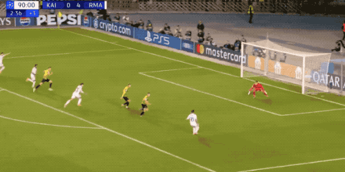 第52分钟,库尔图瓦大脚开球,姆巴佩斜线超车,甩开后卫,单刀破门。姆巴佩也成为皇马队史首位包揽单赛季欧冠前3个进球的球员,创造纪录。
