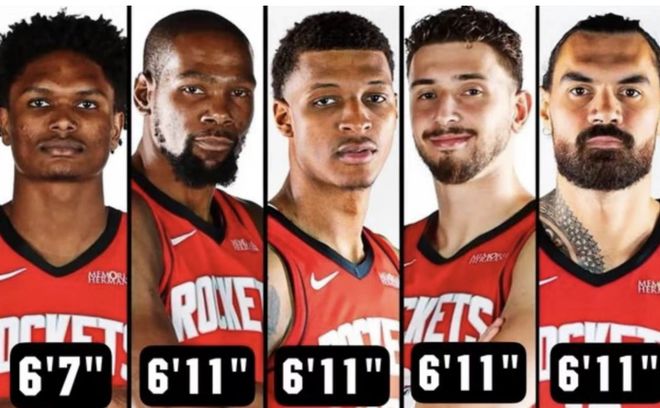 第三:明天新赛季第一场比赛是火箭PK雷霆,火箭的首发阵容出炉,主帅乌度卡透露将派出杜兰特、申京、阿门-汤普森、亚当斯和史密斯的阵容!这套阵容的球员身高臂长,其中2.01m的阿门-汤普森已经是最矮的球员,其余四名球员的身高都是2.11m。