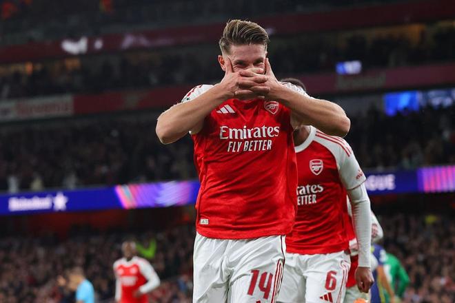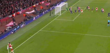 第70分钟,赖斯角球传中,加布里埃尔后点头球摆渡,哲凯赖什后点接应,用身体将球挡入球门,完成梅开二度好戏,4-0!