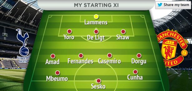 北京时间11月8日,英超第11轮,曼联客场对阵热刺。《曼彻斯特晚报》的记者对本场比赛曼联的首发阵容做出预测。