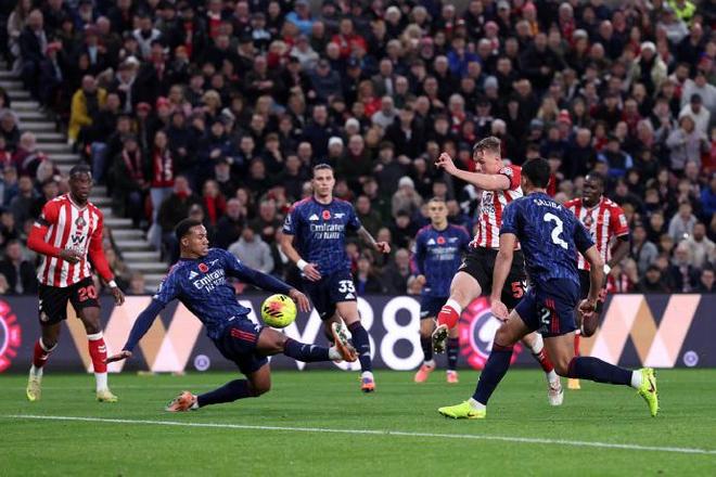 第45+2分钟,阿森纳将球传到禁区内,萨卡头球回做,无人盯防的萨利巴一脚抽射打高,错失扳平良机。