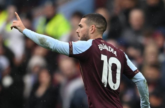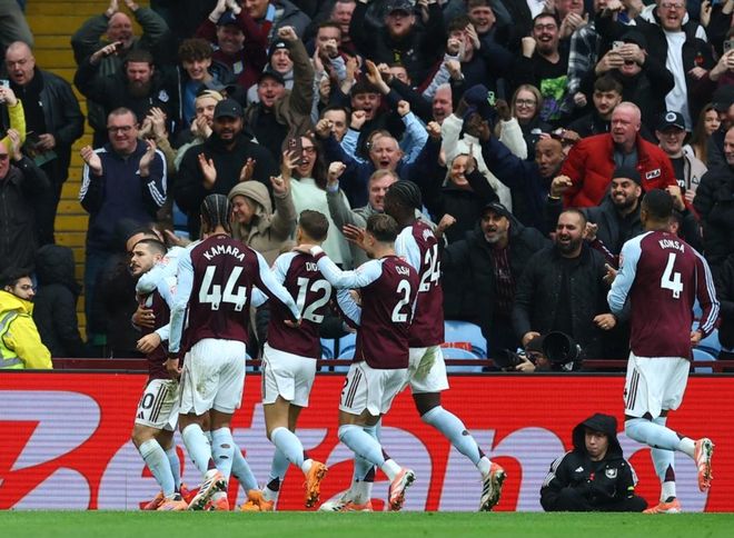 比赛第12分钟,卡马拉在禁区外拔脚怒射,门将倒地把球扑了出去。第23分钟,卡马拉犯规,被出示黄牌。塔韦尼耶主罚任意球,直接射门,结果踢飞了。第27分钟,阿莱士-希门尼斯犯规,也拿到黄牌。阿斯顿维拉获得任意球机会。布恩迪亚主罚,他直接射门,皮球越过人墙,钻入球门!门将一点反应都没有。阿斯顿维拉取得领先。