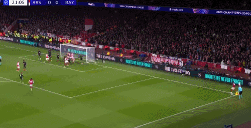 比赛开始后,2队都很快的便进入节奏;第9分钟,特罗萨德左路插上挑传后点,萨卡包抄慢了半拍仍将球传回,特罗萨德连续2脚射门尝试都被挡出;第19分钟,奥利塞踩单车后小角度似传似射,特罗萨德及时跟防将球挡出底线。第22分钟,萨卡角球精准开到门前,廷贝尔近距离甩头攻门得手,1:0!拜仁本赛季首次在欧冠落后。