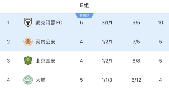而在本轮同组稍早结束的1场对决中,麦克阿瑟主场2-1逆转中国香港球队大埔。目前麦克阿瑟积10分提前出线,但尚未锁定小组第一。