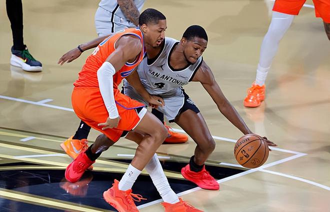 本场比赛中,马刺的先发控卫达隆-福克斯(De'Aaron Fox)的表现依然是相当稳定的。福克斯全场出场36分35秒,投篮15中8,三分线外7中3,罚球4中3,得到了22分2篮板4助攻2抢断1盖帽的全面数据,还有1次失误和4次犯规,正负值为+7。福克斯在进攻端保持了稳定的效率,他也是有着全面的进攻手段和出色的得分能力,他的突破犀利,他的投篮稳定性也相当突出,他也能够起到传球和组织方面的作用。最关键的是,被大家认为防守能力一般的福克斯在防守端的表现并不差,他也是能够起到很好的防守效果的。总体来看,福克斯在本场比赛中的表现算得上是攻守兼备,他的一系列出色表现也是马刺能够战胜实力强大的对手的关键因素。