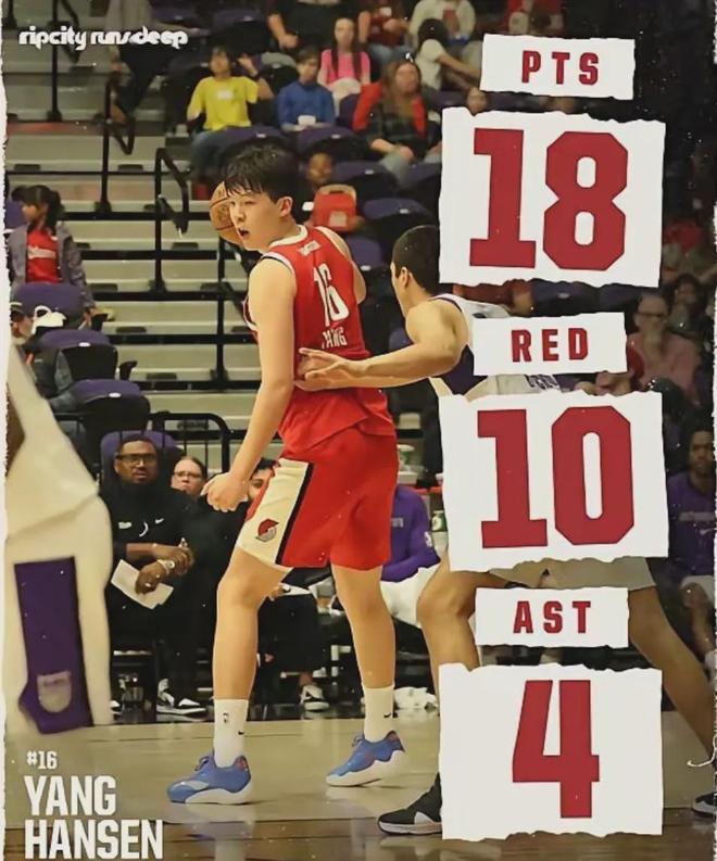 这也是杨瀚森NBA(发展联盟)生涯首次两双数据,此前要么是得分差一点,要么是篮板差一点,今天终于圆满了。